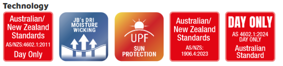 - Complies with Standards AS/NZS 1906.4:2023 and AS/NZS 4602.1:2011 Day Only
