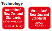 - Complies with Standards AS/NZS 1906.4:2023 and AS/NZS 4602.1:2011 Day & Night