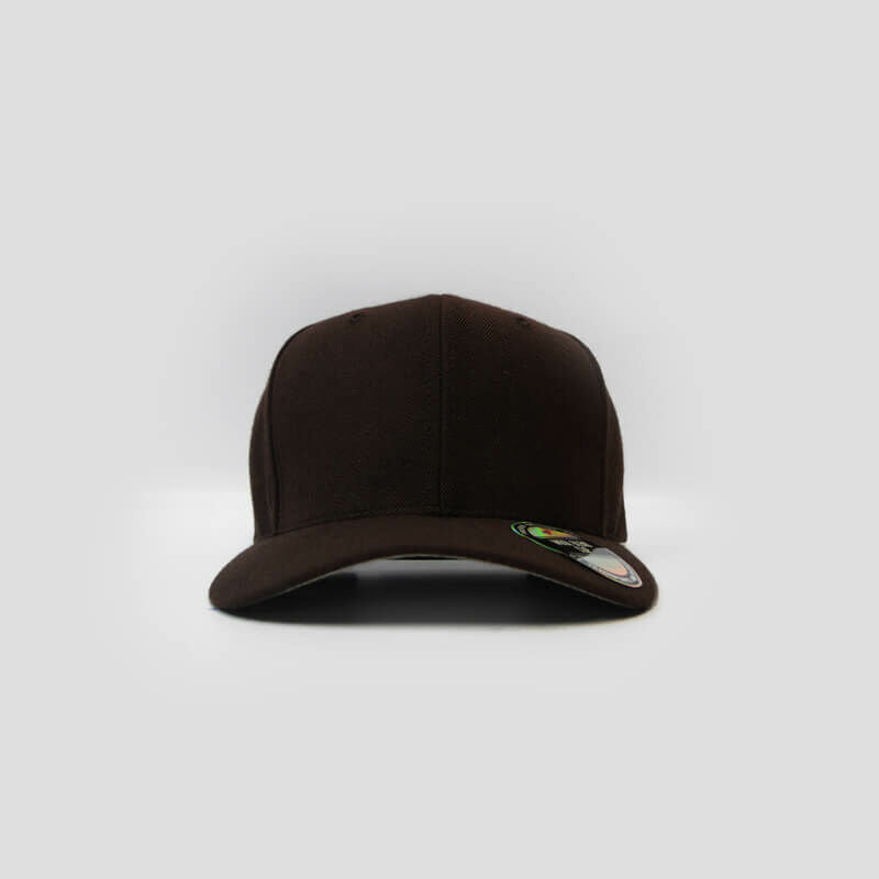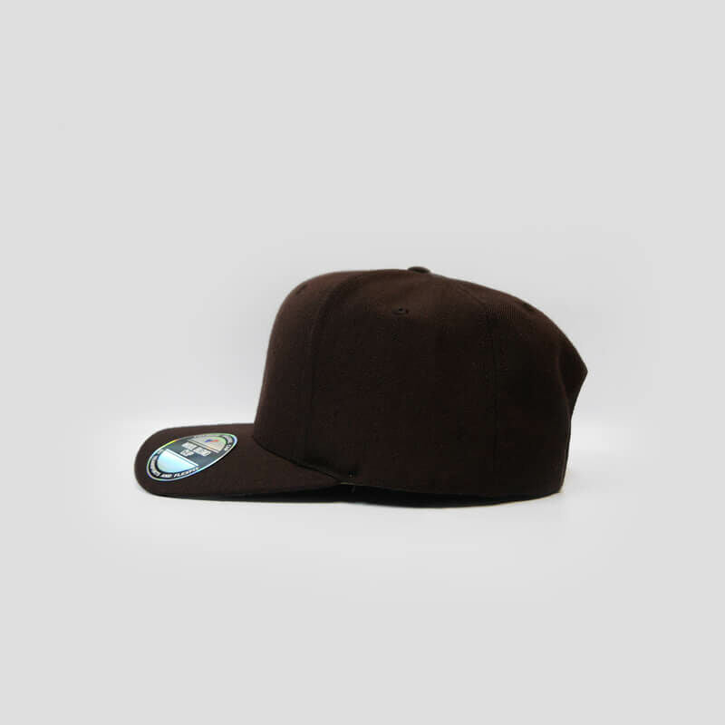 Premium wool-blended baseball cap. 6-panel structured cap with silver undervisor. Flexfit® fitted cap for style and comfort. 8 rows of stitching on visor.